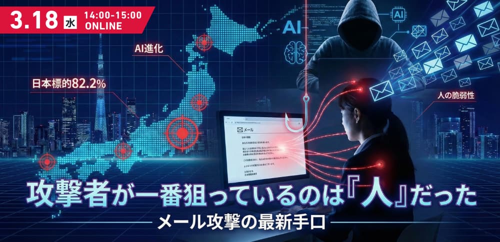 本Webinarでは、日本を狙ったメール攻撃の最新トレンドとその背景を整理しながら、攻撃者がなぜ「人」を最大の侵入口として狙うのかを解説し、人を中心としたメールセキュリティ対策をご紹介します。