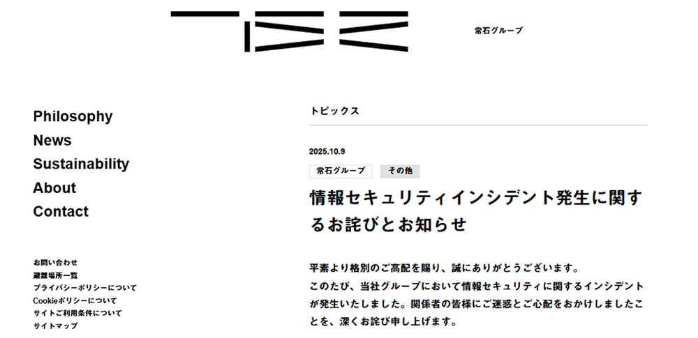 ツネイシホールディングスによると2025年10月3日、従業員のアカウントパスワードが外部漏えいしている事実が確認されました。影響により、該当アカウントが何者かに不正利用され、不特定多数の外部にフィッシングメールを送信する事態となりました。