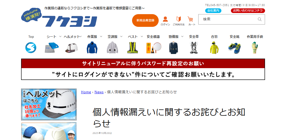 参照弊社が運営する「フクヨシショッピングサイト」への不正アクセスによる個人情報漏えいに関するお詫びとお知らせ|株式会社フクヨシ