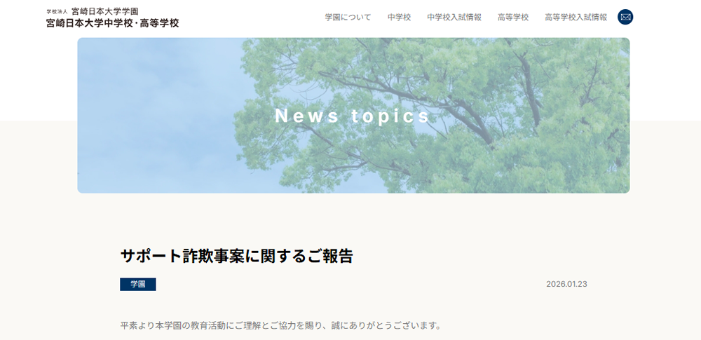 学校法人宮崎日本大学学園は2026年1月23日、学園内で職員が使用していた業務用パソコンがサポート詐欺による不正アクセスを受け、個人情報が漏えいした可能性があると発表しました。